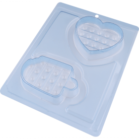 Forma especial com silicone (3 partes), ideal para produção de chocolates com muito mais praticidade e precisão. As formas de acetato especiais são reutilizáveis, contém um silicone e duas partes de acetato!
