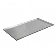 Bandeja plana perfurada dobrada em material alumínio liga com espessura de 1,00 mm, para acondicionamento e cozimento de massas alimenticias