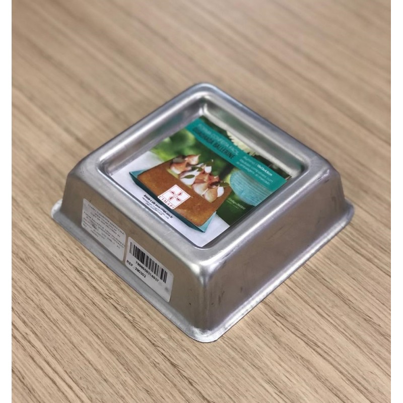 A forma de alumínio para bolo Ballerine da marca Cimapi é um produto de alta qualidade e durabilidade. Com dimensões de 13x13x4,5 cm, possui um design quadrado que confere um toque elegante aos bolos preparados nela.